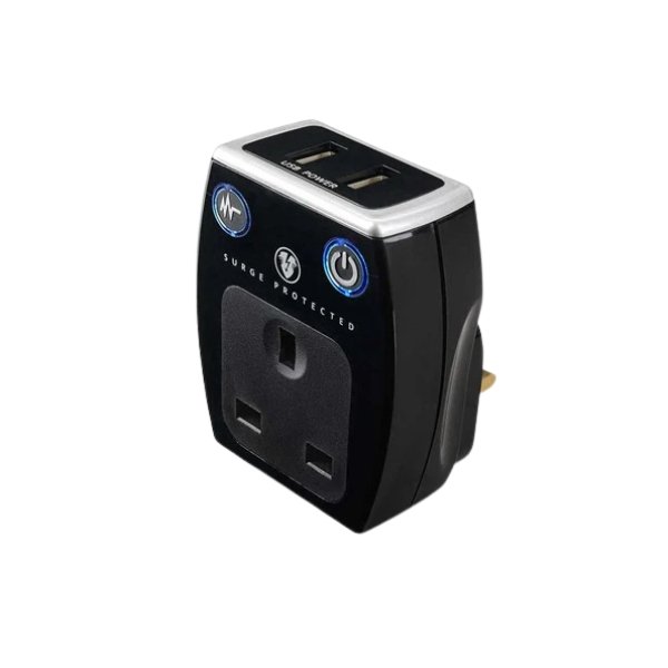 Masterplug High Gloss 2 USB (3.1A) Surge Adaptor Black (SRGAUSBPB3-MPA)